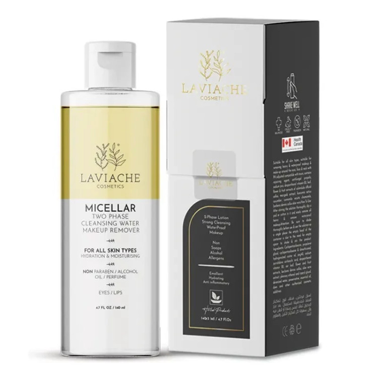 میسلار واتر دو فاز مناسب پاک کردن گریم و آرایش های ضد آب لاویاچه (انواع پوست) (140 میلی لیتر)